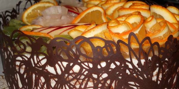 - Ажурные узоры из шоколада потребуют некоторой сноровки. Для их приготовления растопите горькую или белую плитку на пару (оптимально – в СВЧ-печи), переложите массу в кондитерский шприц или мешок.