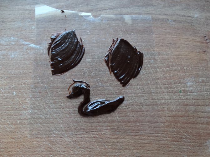 А вот теперь лебедь. Пару капелек на основу (торт, пирожное или просто тарелку). На эту шоколадную массу садим тельце птички. По бокам – крылья. Даем фигурке застыть в морозилке.