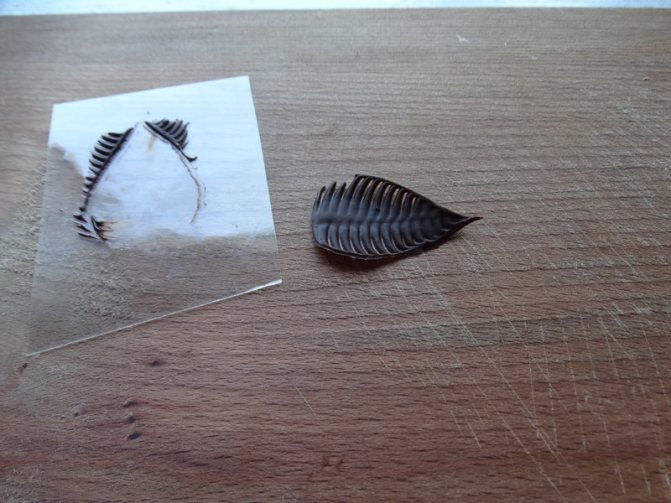Вот такие листики получились. Один из листочков я рисовала при помощи мешка. Такой листик получился особенно ажурным.