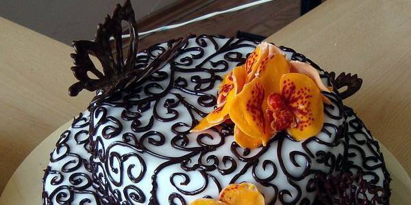 Оформление шоколадной глазурью, узорами или фигурками считается «классикой жанра». Этим белым или горьким лакомством испортить торт просто невозможно. Шоколад прекрасно сочетается с легким бисквитом, слоеным тестом, сливочным или творожным муссом, всевозможными суфле и кремами. Растопленному шоколаду можно придать практически любую форму, а застывший он не растечется, не потрескается. SI Exif