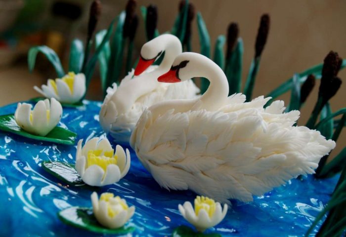 Сладкий символ преданности – свадебный торт с лебедями: как сделать птиц