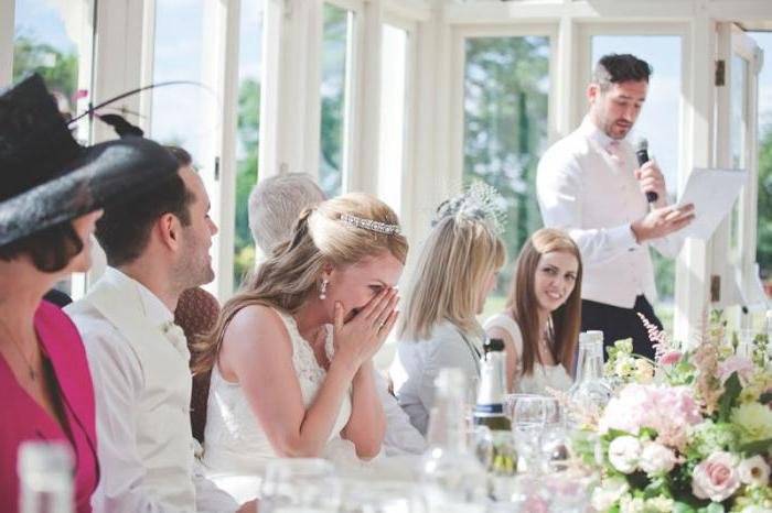 Однако и молодые люди могут отдать предпочтение красивым и длинным речам, это уже зависит от их вкусов и характера. Так, например, от свидетельницы можно ждать не только очередной шутки, но и трогательного тоста о таком долгожданном и волнительном моменте, как бракосочетание, о ее долгой дружбе с невестой, о наступающей счастливой супружеской жизни, которая полна романтичных и радостных моментов.
