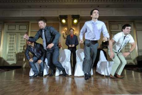 Непредсказуемый танец Жениху предлагается под музыку исполнить танец. В испытании могут принимать участие и друзья жениха. Подвох задания заключается в том, что мелодии меняются каждые 15 секунд. При этом, чем более разноплановые мелодии Вы подберете, тем сложнее жениху будет под них подстроиться.