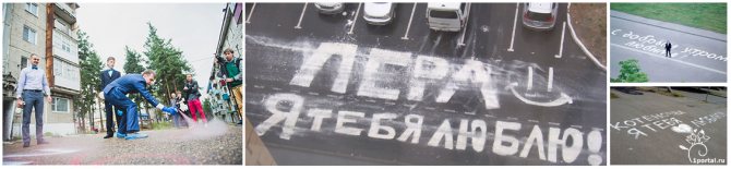 (Нужно баллончиком или мелом написать на асфальте «Я люблю тебя!»)