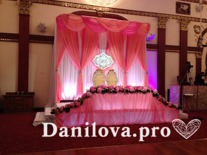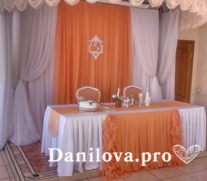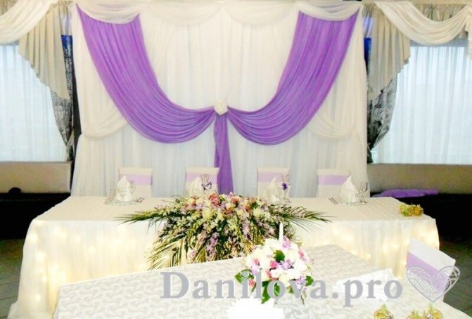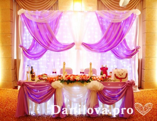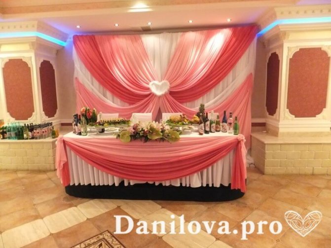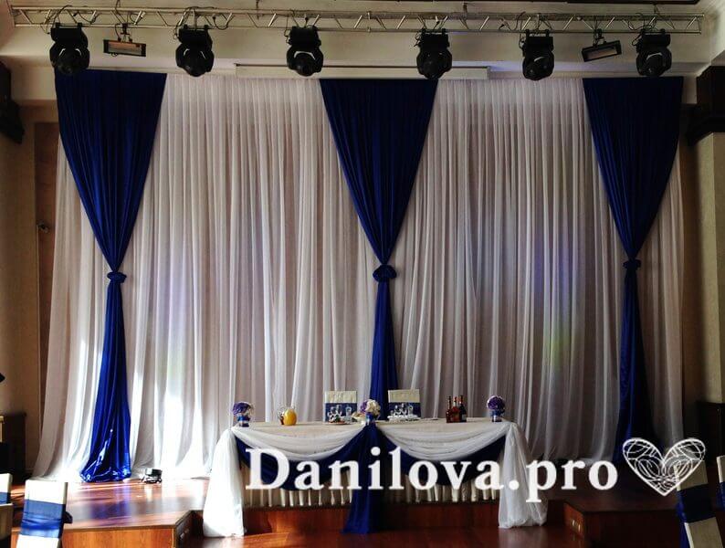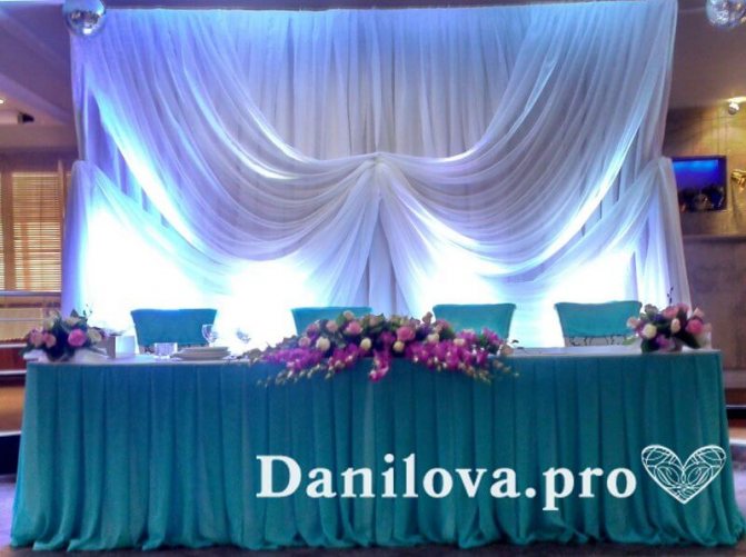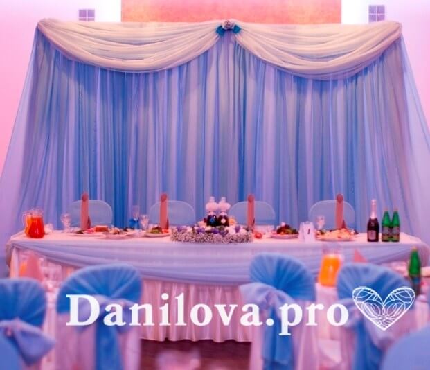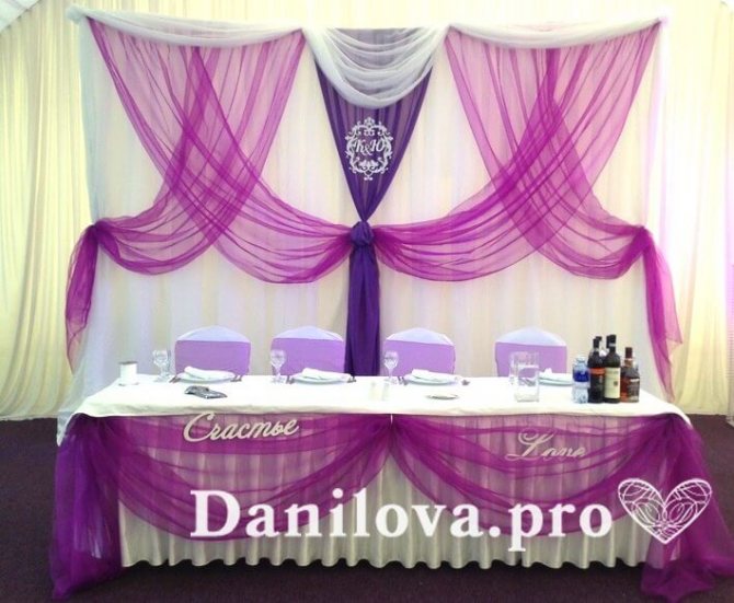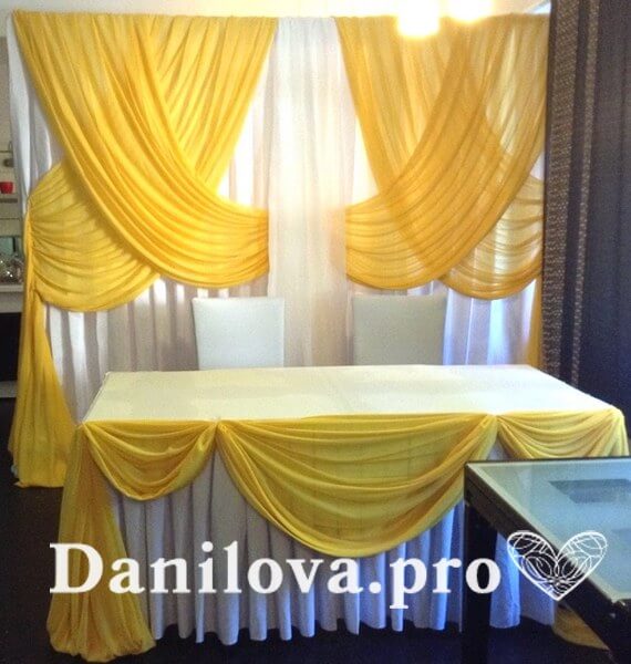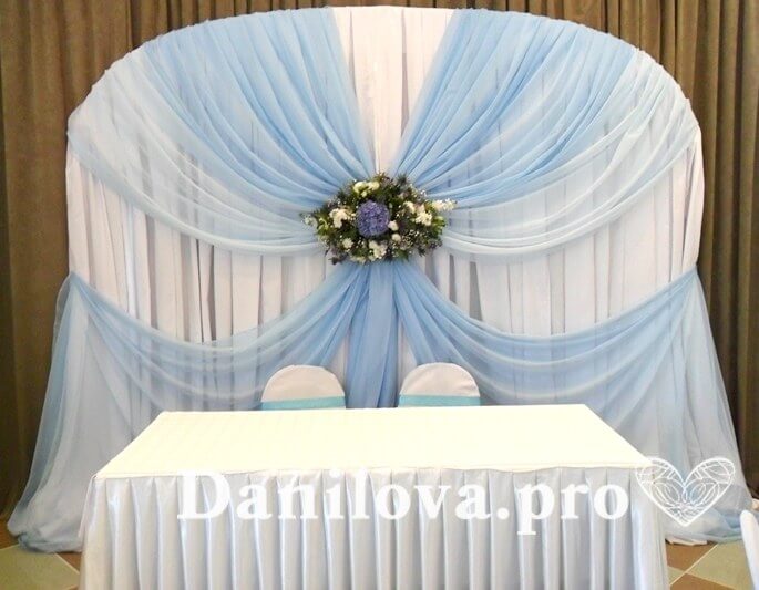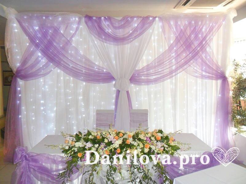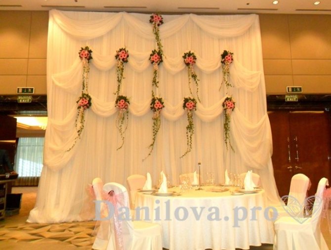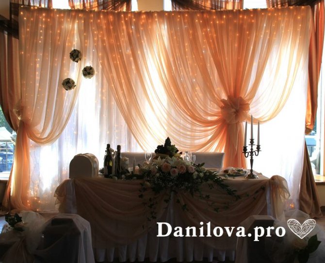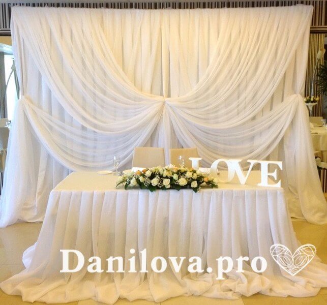 Студия декора Анастасии Даниловой > Оформление тканью > Оформление фона за молодыми – задник из ткани на свадьбу