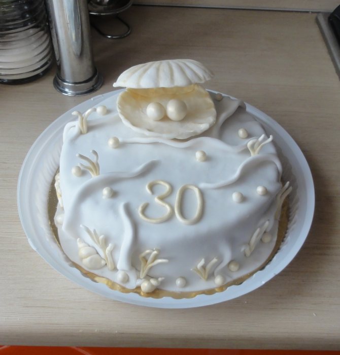 Торт – обязательный атрибут любой годовщины, в частности, жемчужной. Существует масса оригинальных идей по созданию дизайна торта.