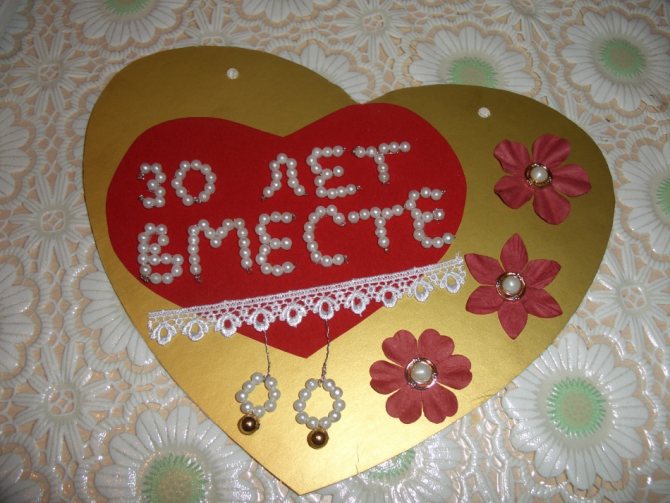 Во сколько обойдется такой подарок, задумываться не стоит: он не будет дорогим, но юбиляры сохранят его как напоминание о празднике, который отмечают спустя 30 лет после рождения их семьи.