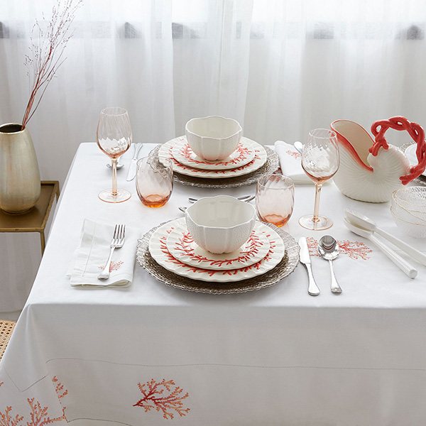 Даже если намечается скромное торжество в маленьком семейном кругу, можно очень стильно украсить комнату или сад, где будет проходить праздник. Учитывая, что свадьба коралловая, можно использовать морские мотивы. Ракушки, морские звёзды, стеклянные камушки в больших прозрачных вазах и подсвечниках будут смотреться очень красиво. Стол можно украсить веточками кораллов. Если натуральные найти сложно, можно сделать их из проволоки и бисера или окрашенных древесных ветвей. Роскошно будет смотреться красная скатерть. Обязательный атрибут праздничного стола – красное вино. Приветствуются любые красные фрукты и овощи.