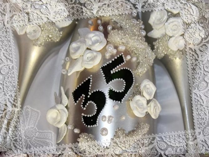 - Вино или коньяк с 35-летней выдержкой – это хороший подарок для тех, кто мало знаком с парой или же видится с супругами не часто. Такой алкогольный напиток одновременно дорогой в плане стоимости, престижный и уважаемый. С другой стороны, напиток может послужить идеей для приятного романтического вечера, который супружеская пара когда-нибудь проведет вместе.