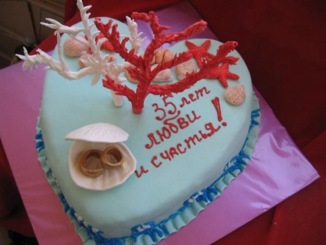 Почему же годовщину прозвали именно коралловой? Дело в том, что коралл, как ничто лучше, характеризует брак на 35 году жизни. Кораллы образуются в морских глубинах далеко не сразу, а на протяжении долгих лет. Так и супруги, «наращивают» каждый день в своем браке, обретают детей, внуков, друзей, родных, удачи, разочарования, победы и проигрыши, заботы и радости. Все вместе эти события превращают семью в большой «коралловый риф» — нечто красивое, дорогое, достойное празднования.
