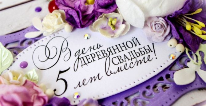 Уважаемые друзья! Сегодня вы отмечаете прекрасную дату – 5 лет под одной крышей. Пусть брак ваш будет, как лучшие сорта деревьев: прочен, нерушим, долговечен. Пусть ваше древо распускает ветви – это дети, зеленеет листвой – красота и здоровье. Будьте счастливы!