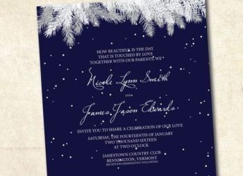Приглашение на свадьбу в виде открытки несложно приготовить самостоятельно. Можно самому придумать сюжет оформления или взять за основу любое красивое приглашение и дополнить своими деталями. Дизайнерская бумага глубокого синего цвета, серебристая фольга, акварельные белые или синие краски, белоснежные снежинки на синем фоне, изящные резные кружева из синей бумаги на белом глянцевом плотном картоне – это лишь малая часть примеров возможного оформления открытки-приглашения на свадьбу.