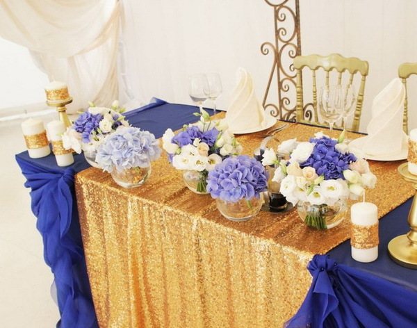 Однако и малое количество синего, тоже плохо – он просто затеряется и от синей свадьбы останется лишь название. Нужно найти баланс в оформлении.