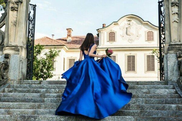 Невестам, решившимся на синее свадебное платье, не стоит украшать подол белыми лентами или повязывать пояс.