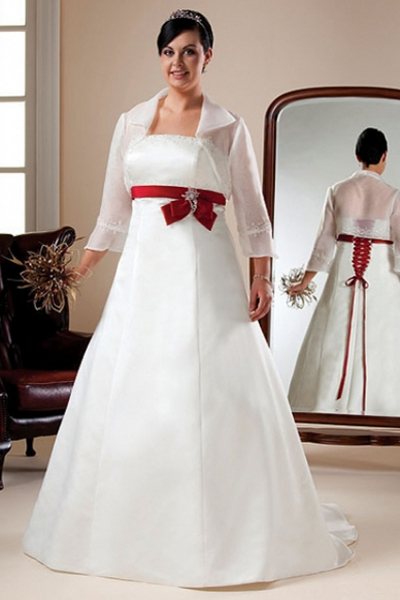 В основном, в каталогах свадебных салонов представлены платья для невест с завышенной талией или А-образного силуэта. Данные фасоны являются самыми подходящими, ведь завышенная талия позволяет аккуратно подчеркнуть грудь, а А-образный силуэт с плавно расширяющейся книзу юбкой позволяет скрыть не только округлившийся живот, но и полноту.