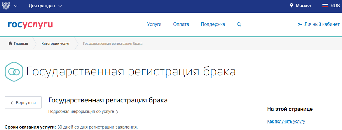 - при подаче заявления через портал Госуслуг можно выбрать дату бракосочетания и учреждение ЗАГС, однако сократить месячный срок ожидания можно только при личной явке в указанный орган;