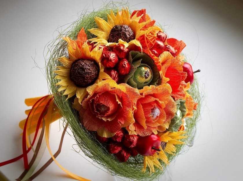Конфетные букеты заняли почетное место среди оригинальных подарков и это вполне объяснимо, ведь преподнося такой презент «убиваешь двух зайцев одновременно». Во-первых, это оригинально и необычно, во-вторых, вкусно, а благодаря тому, что сладость завернута в денежку еще и практично.