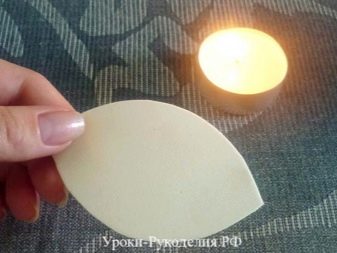 Разогреваем подготовленный утюг в положении терморегулятора «шерсть». Прикладываем заготовки бутонов к наружной поверхности утюга, ждем пока материал нагреется и сам отстанет от поверхности. После этого он примет нужную форму.