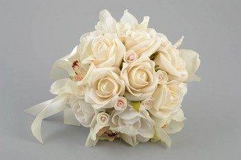 Свадебный букет невесты из фоамирана неповторим и уникален. Созданный с любовью, нежностью и с предвкушением предстоящего торжества, такой букет станет настоящим украшением торжества и предметом зависти всех подруг.
