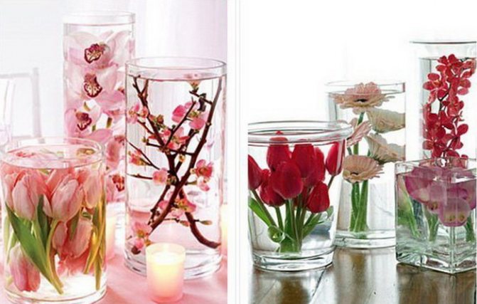 Глицерин и горячая вода берутся в пропорции 1:2, жидкость наливают внутрь сосуда (вазы, декоративного бокала, банки) и оставляют на пропитывание на срок до двух месяцев, периодически подрезая стебли.