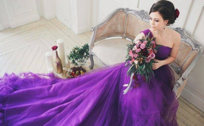 Монобукеты смотрятся красиво, если у них оригинальный цвет. Например, сиреневый или пурпурно-оранжевый. А также в букетах невесты используют и другие цвета: