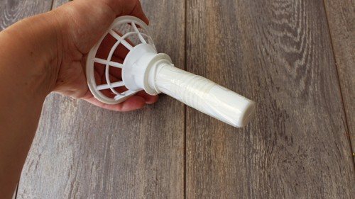 1) Снимите крышку и достаньте из портбукетницы флористическую губку, погрузите её в емкость с холодной водой.