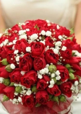 Классические невесты выбирают композиции из роз красного цвета. Большинство девушек среди огромного разнообразия цветов, чаще всего, выбирают именно розы, которые ассоциируются с прочностью предстоящего брака.