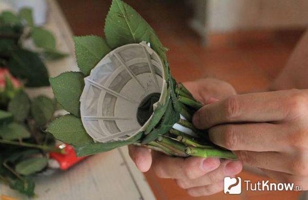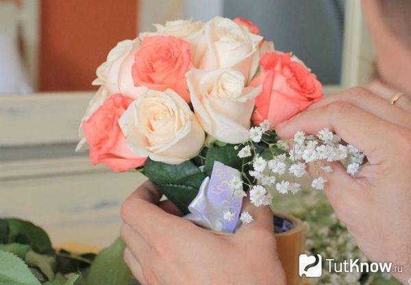 Для того чтобы сотворить такой букет, выполняются следующие действия: