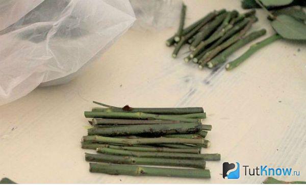 - В первую очередь избавляемся от шипов, листьев и надломленных цветков.