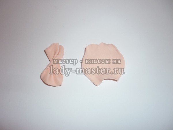 - Розовую ленту сверните пополам лицевой стороной наружу.