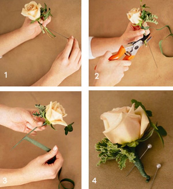 Но не стоит забывать о том, что украшения не могут быть одинаковыми. В бутоньерке может использоваться тот же цветок, но метод оформления должен быть немного другим.