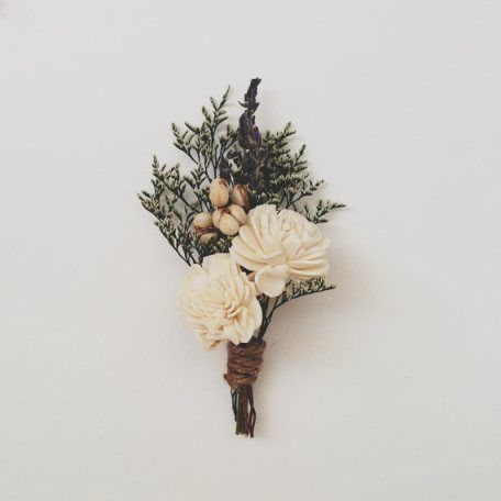 Не теряют актуальности и традиционные розы, особенно кустовые сорта. Они имеют маленькие бутоны, из которых удобно составлять букеты бутоньерки, и более устойчивы к длительному отсутствию влаги. Розы прекрасно смотрятся в любой композиции, могут быть как основным цветком в бутоньерке, так и гармоничным её дополнением. Для декора можно использовать сухоцветы, суккуленты, ягоды, зелёные веточки и листья и многое другое.