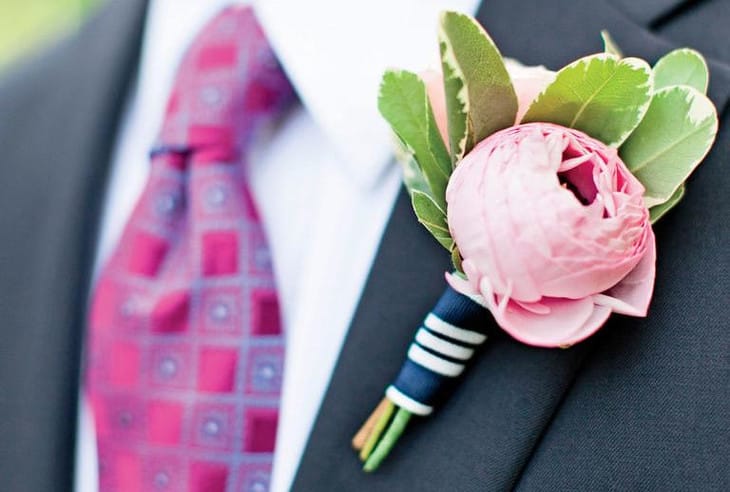 Современные молодожены нередко оформляют свою свадьбу в определенном ярком цвете, чтобы сделать торжество оригинальным и незабываемым. При этом необязательно подбирать наряды жениха и невесты в одном выбранном оттенке, достаточно добавить лишь несколько деталей к образу. Если у невесты есть масса вариантов, то у молодого человека выбор не так обширен, поэтому он может украсить свой классический костюм яркой бутоньеркой.