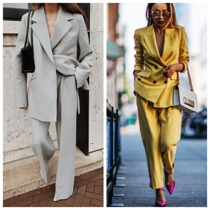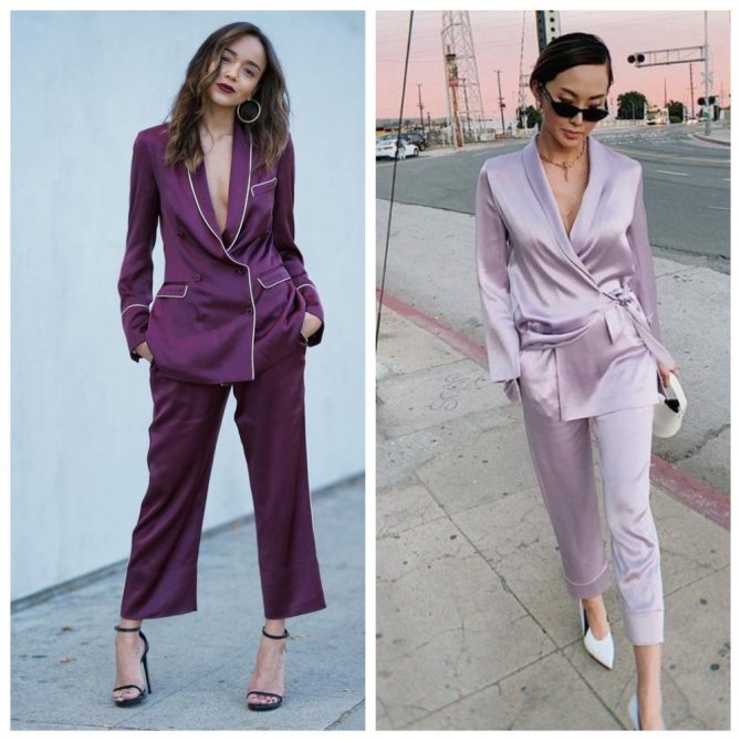 Мода на брючные костюмы в пижамном стиле сохранилась. Сегодня в таких нарядах можно прийти не только в кафе на курорте, но и на свадьбу друзей. Выглядит данный комплект стильно, свежо и молодежно. Главное — понимать какой будет аудитория мероприятия, чтобы не пришлось каждому второму рассказывать о моде.