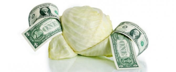 - Деньги в капусте. Достаточно креативно будет преподнести деньги в капусте. Для этого разрежьте ее поперек, чтобы конец кочерыжки был наверху. Далее ножом очень аккуратно выньте небольшое количество сердцевины и в получившееся углубление поместите деньги, завернутые в целлофан. Половинки сложите вместе и перевяжите капусту красивой лентой, завязав наверху большой красивый бант.