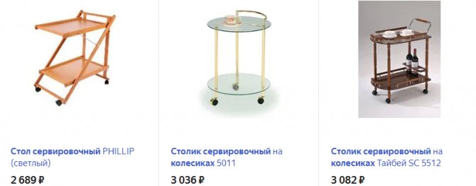 - Сервировочный столик на колесиках. Полезная и красивая вещь, ведь благодаря ей можно подавать чай или кофе прямо к постели. Или можно вдвоем поужинать в любом уголке квартиры.