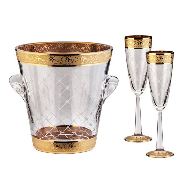 если хочется сделать особенный презент, можно подобрать набор для романтического вечера из красивых бокалов и ведерка для льда, который делает вкус шампанского еще приятнее.