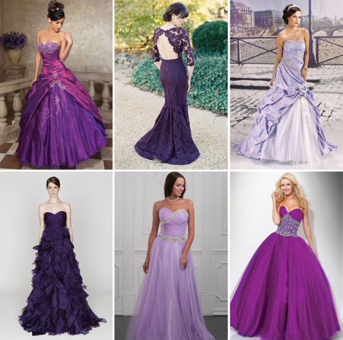 - Фиолетовый. Загадочный и таинственный цвет станет отличным вариантом для мудрых и решительных женщин. Платье фиолетового оттенка можно дополнить украшениями из золота и серебра с различными драгоценными камнями.