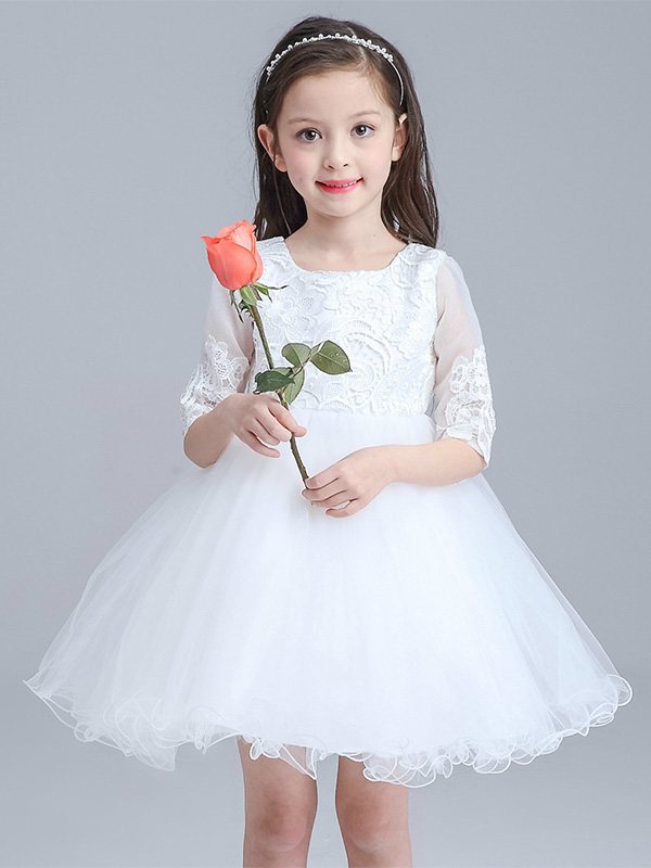 Туалеты для церемонии бракосочетания могут быть и длинными, и короткими. При выборе их нужно учитывать физические особенности, если малышка слишком мала, чтобы устойчиво держаться на ногах, то ей не подойдет длина в пол. Ребенок попросту запутается в таком платье, и будет падать. Подойдут короткие юбочки, и укороченные спереди, но имеющие сзади удлиненный шлейф.