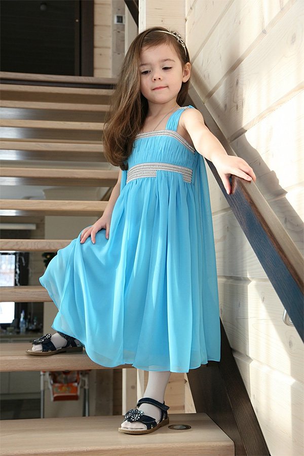 - маленьким девочкам не рекомендуется шить модели в пол, оптимальная длина – середина икры, в длинном платье ребенку неудобно ходить и ем более танцевать;