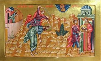 — Пример Ирода показывает нам душевное состояние человека, который тянется к хорошему и доброму, но не хочет употребить усилий: От дней же Иоанна Крестителя доныне Царство Небесное силою берется, и употребляющие усилие восхищают (получают) его; это слова Христа (Мф. 11, 12). Поэтому вино, тщеславие (ради клятвы и возлежавших с ним (Мк. 6, 26)), греховные страсти побеждают Ирода и делают его убийцей Иоанна. А Иоанн до конца исполнил всякую правду, ту правду, слова о которой слышал от Христа при Его крещении в Иордане (см.: Мф. 3, 15). Его мученическая смерть предварила Крестную смерть Спасителя, как его рождение — Рождество Богомладенца.