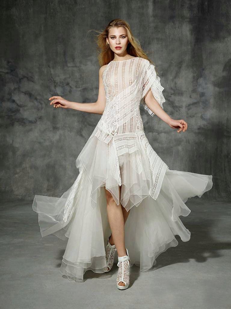 Красивое свадебное платье совсем не обязательно должно быть длинным. В тренде находятся короткие модели, отличающиеся сложным кроем и неординарными узорами. Вновь актуальными становятся пышные коротенькие юбки, которые идеально подходят для тематических мероприятий.