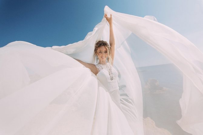 По фактуре ткань для пошива свадебного платья может быть матовая, блестящая, отражающая свет (органза, шелк, атлас), натуральная или синтетическая. Самые популярные «свадебные» ткани: