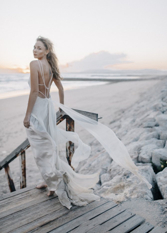 Для бохо-образа не подойдут пышные платья, стразы, атлас, корсеты, яркие цветовые акценты. Платье должно быть свободным, легким, летним. Уместно будет смотреться кружево, этнические элементы, длинные рукава. Цвета платья в стиле бохо пастельные: песочный, кремовый, оливковый, нежно-розовый.