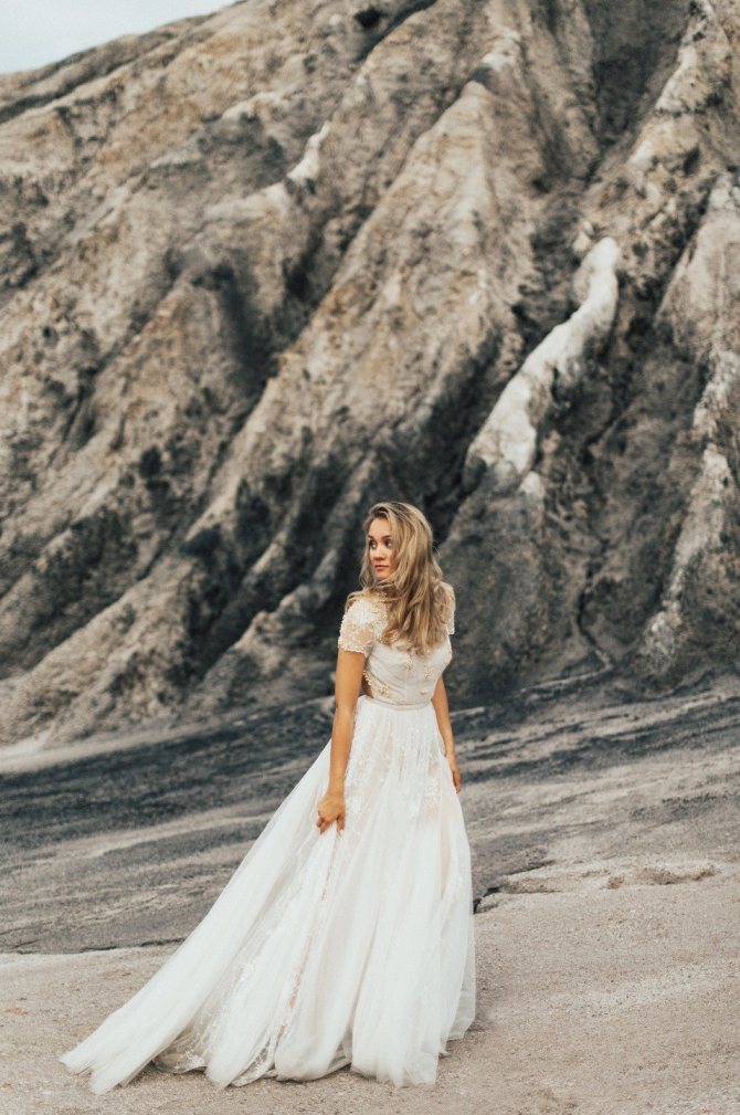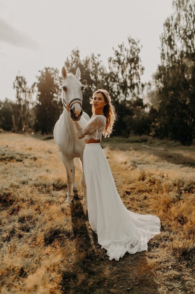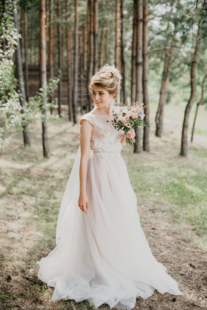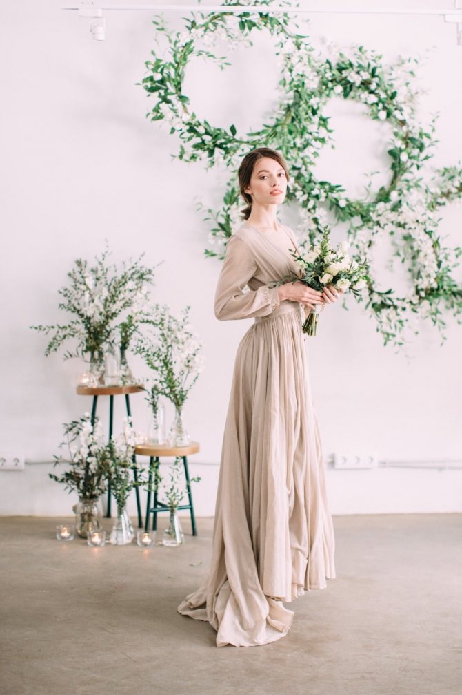 Платье в стиле рустик или эко — это природная грация и красота, не обремененная сложными деталями. Образ невесты должен быть максимально простым и легким, без экстравагантных деталей, пышных юбок, аппликаций. Подойдут легкие натуральные ткани светлых оттенков бежевого или цвета нюд.