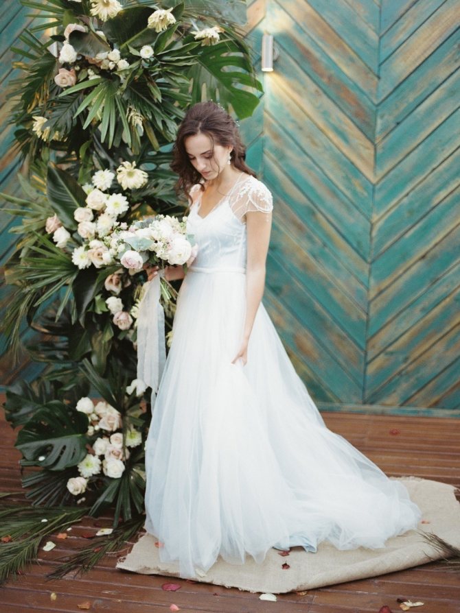 Очень «требовательный» к фигуре невесты наряд. Идеально подойдет для худеньких и невысоких девушек, которые хотят создать трогательный и при этом современный, легкий образ. Такой вариант будет смотреться уместно на неформальной, пляжной или бохо-свадьбе.