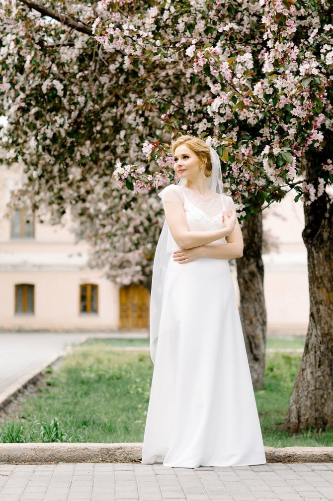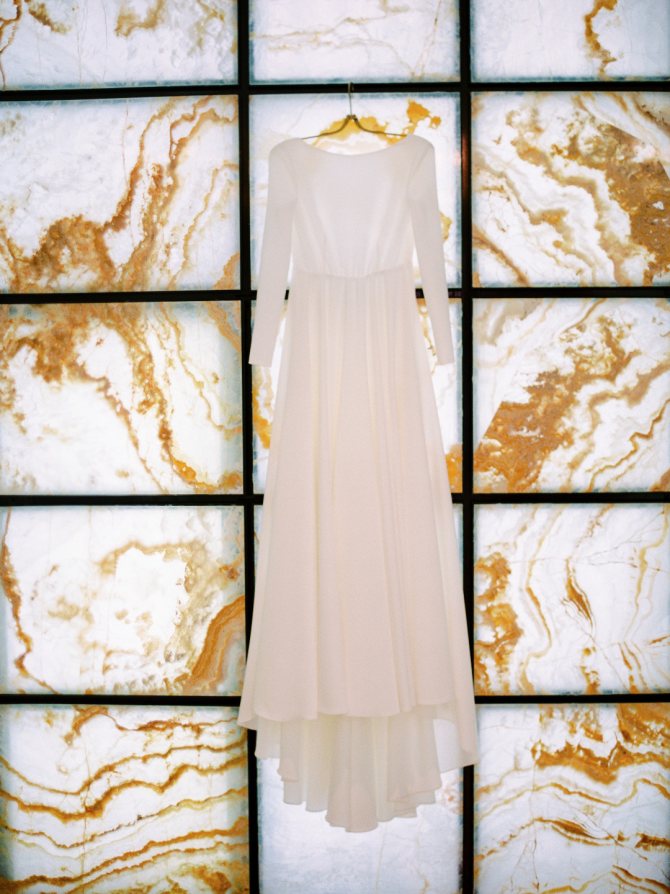 Именно этот силуэт за счет своей лаконичности позволяет добавлять открытую спину, длинные рукава, элементы декора в виде вышивки или кружева. Такие платья подходят практически под любой стиль свадьбы и идеально вписываются в современный образ невесты.