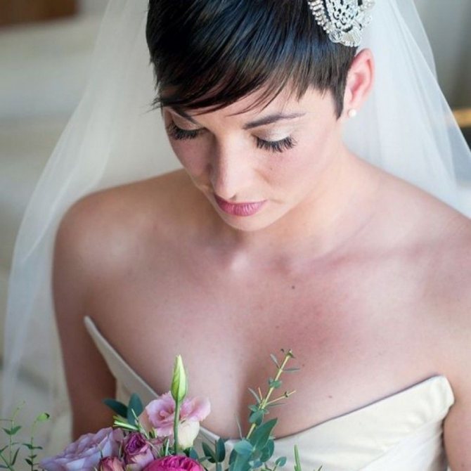 И, наоборот, от огромной фаты голова и шея девушки, привыкшей к коротким и легким волосам, попросту устанет через пару часов.