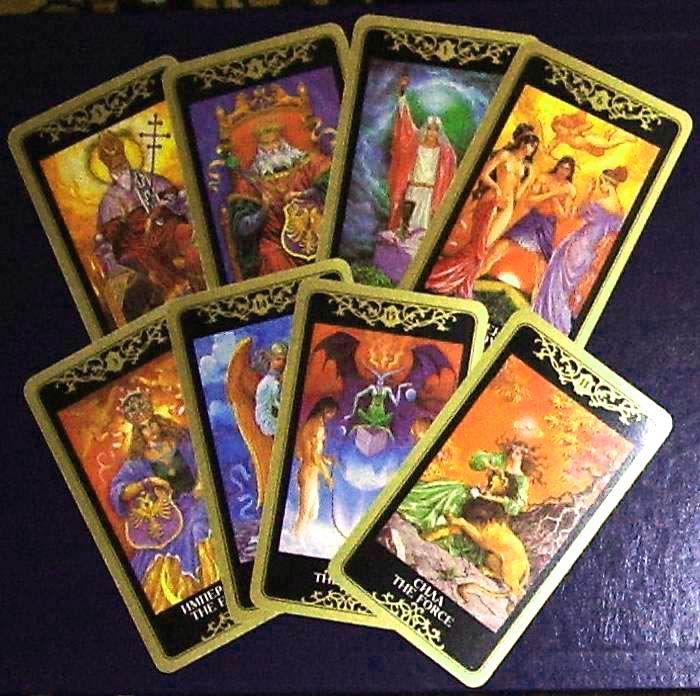 Прежде чем приступить к процедуре, надо в полночь расставить 12 красных свечей (количество месяцев в году) по широкому кругу, зажечь их по часовой стрелке. Разделить карты на арканы, старшие в одну сторону младшие в другую. Из колоды старших выложить внешний круг в пять штук наугад, запоминая с какой именно вы начали раскладку. Внутренним кругом разложить пять крат из колоды младших арканов.