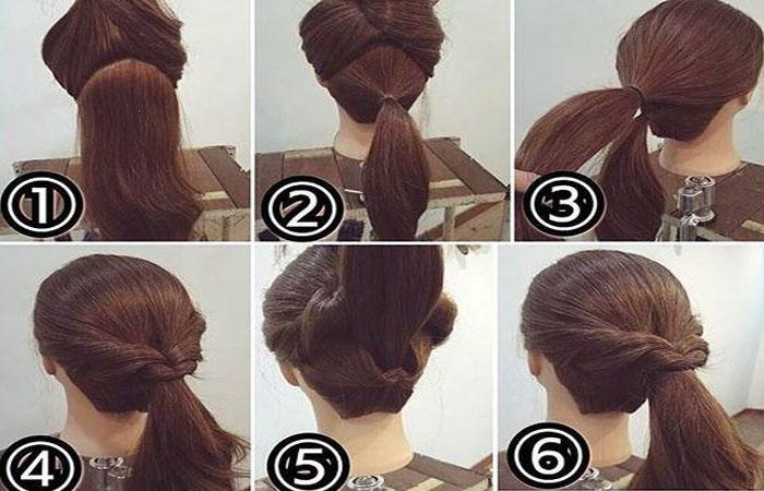 - Соберите волосы в высокий хвост. Резинка должна быть самой обыкновенной.